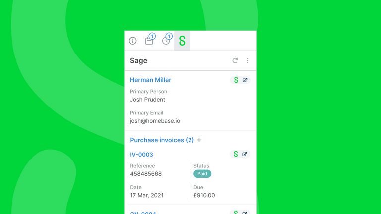 View invoices: View information about the contact's sales and purchase invoices while you are communicating with them