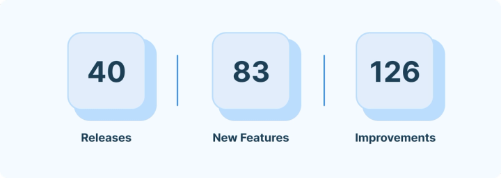 Throughout 2024, we rolled out 83 new features across 40 releases, significantly enhancing the quality of hundreds of existing capabilities and resolving over 500 bugs. Our focus has been elevating the daily experience for teams in Deskpro, introducing functions that enrich the platform, and improving the existing tools.