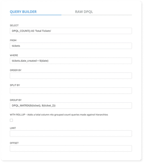 You can create and edit these reports either through the guided DPQL process or by editing the raw DPQL, the choice is yours.