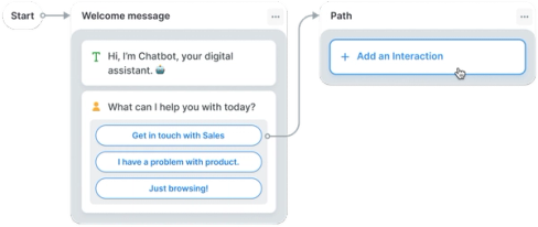 Create pre-defined chat paths, where a user’s selection determines the next step in the conversation, whether you route queries through your chatbot or directly to an agent.