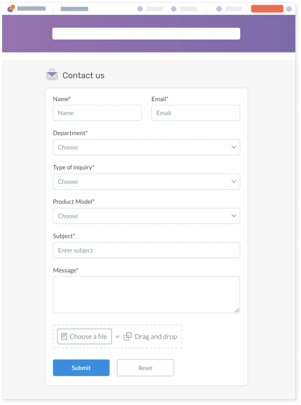 Different types of issues require different information from customers. Dynamic forms change to reflect the information that is required from your customer to help your agents solve their specific problems.