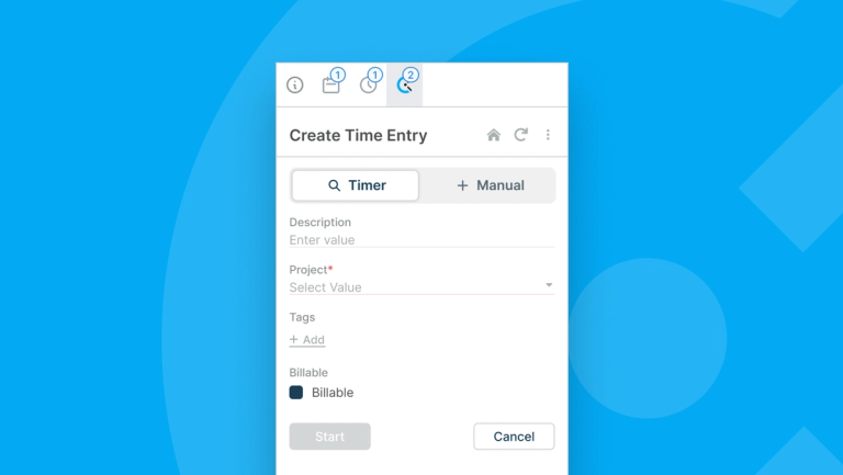 - Start/Stop Timer: Allow Agents to create time entries by starting or stopping the timer for real-time tracking and monitoring the duration spent on tasks.