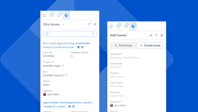 - Create Jira issues: Use the app to create Jira issues from Deskpro tickets without having to leave your ticket.