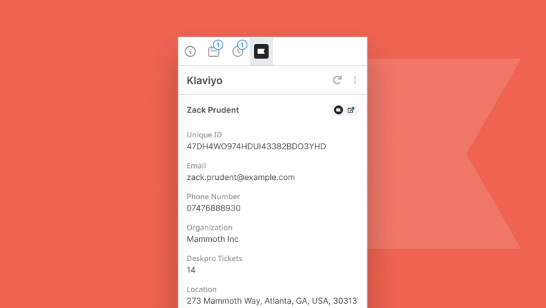 - Match Deskpro users to Klaviyo contacts: Seamlessly link your customers across both platforms to access their mailing information while managing their support tickets.