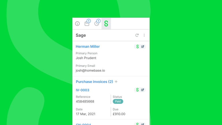 View invoices: View information about the contact's sales and purchase invoices while you are communicating with them