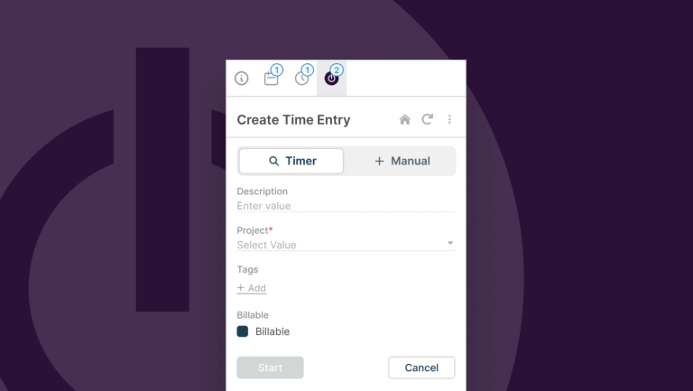 Deskpro's Toggl integration gives agents the ability to manage and track time logs, with features including: