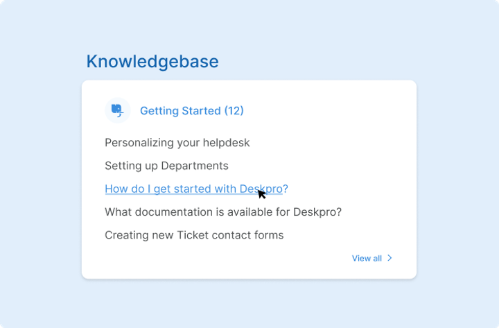 Self-service support can significantly improve efficiency, drive cost savings, and enhance employee satisfaction. A modern internal support system isn't just about managing tickets; it's also about empowering employees to help themselves, which can reduce the overall workload for the support team. Deskpro customers can create, publish, and manage self-service content through a custom knowledge base that can be seamlessly integrated directly into their communication tools.