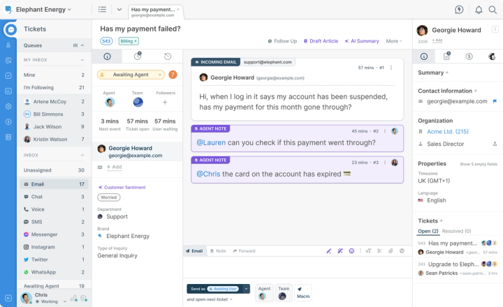 1. Centralized Ticket Management: Deskpro turns every support request, whether it comes from Teams, Slack, or email, into a trackable ticket. This provides your support team with a single, organized view of all incoming issues, regardless of their source, eliminating lost emails and forgotten Slack messages.