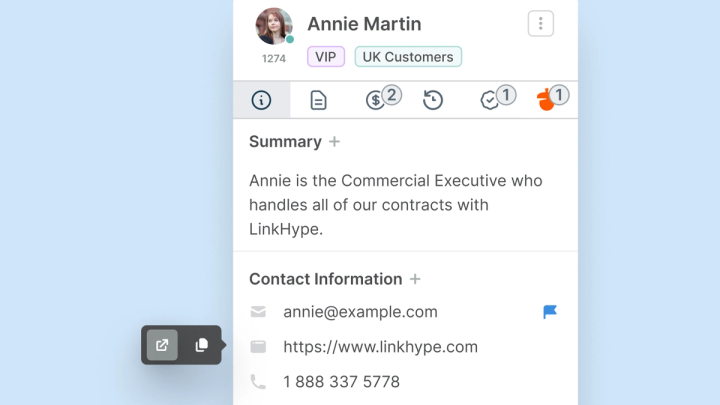 Hover over URLs saved on User and Organization Profiles and click the new option that opens the associated website in a new tab. So you can get the context you need with a click!