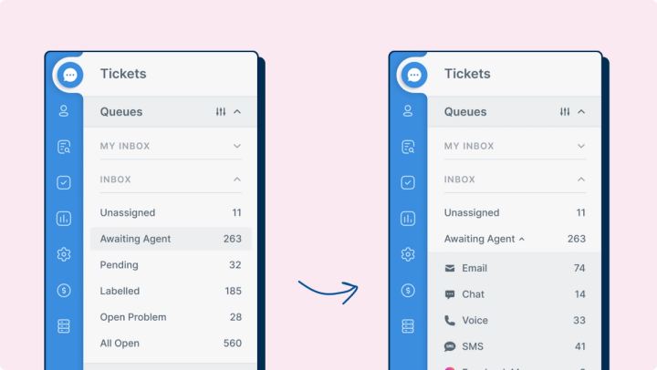 Quickly and easily categorize your ticket queues with the new Group by Channel option.