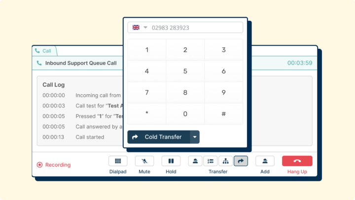 Let agents seamlessly handle warm or cold transfers to external calling sources when you have outbound calling enabled to enhance your Voice channel.