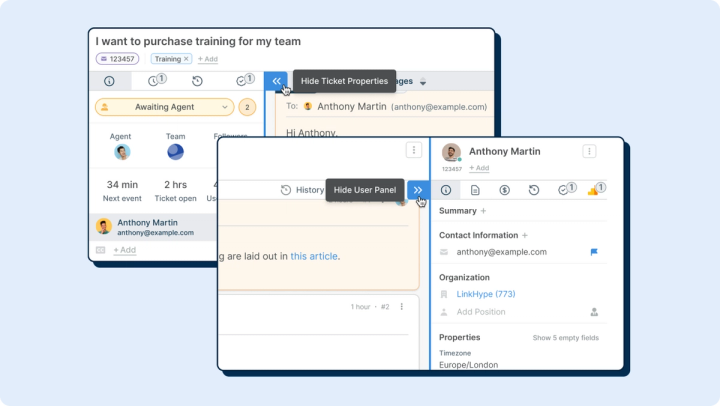 Collapse the Ticket properties and CRM Profile on a ticket to give you better visibility and more room to work. And your viewing preferences will be remembered between tickets.