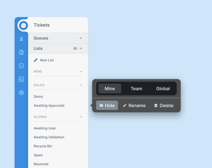 You can now hide specific Ticket Lists in the navigation, reducing clutter and noise from lists you don’t access as often.