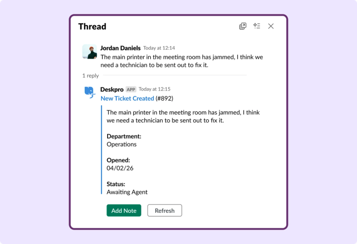 - IT – no more juggling between Slack and your ticket queue
