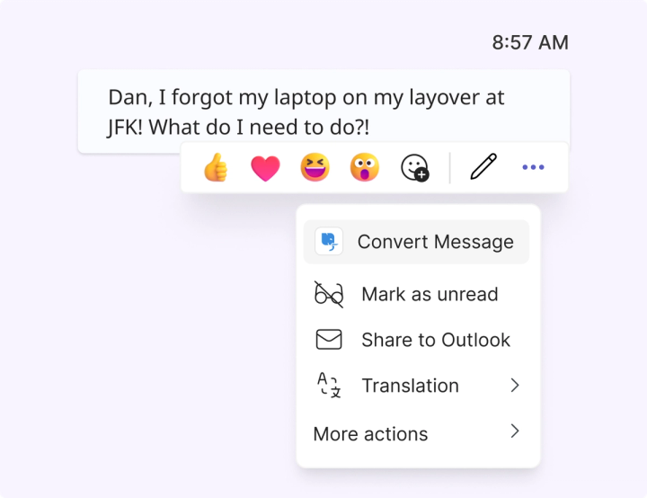Turn everyday Microsoft Teams messages into actionable tickets and manage them right in Teams.