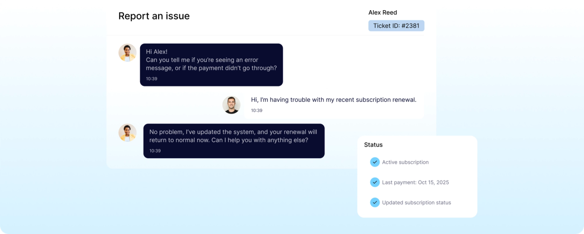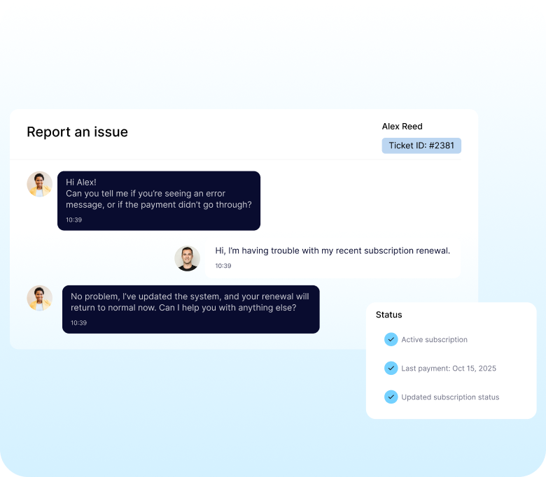 Streamline approval chains, trigger actions instantly, and maintain consistent, high-quality support at scale.