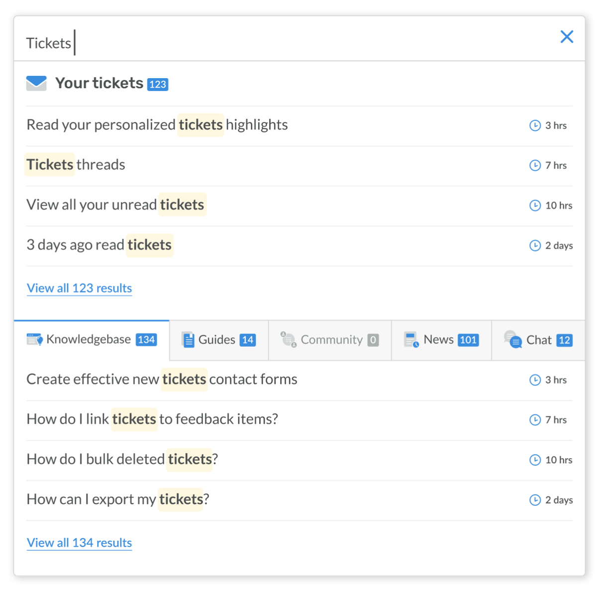 Give customers instant answers with powerful search across the whole Help Center and Knowledge Base software, including Knowledge Base articles, guides, community topics and news.