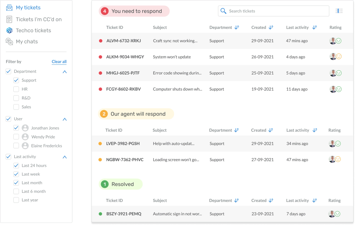 You can access your tickets from the Help Center; view lists of your tickets and notifications with ease.