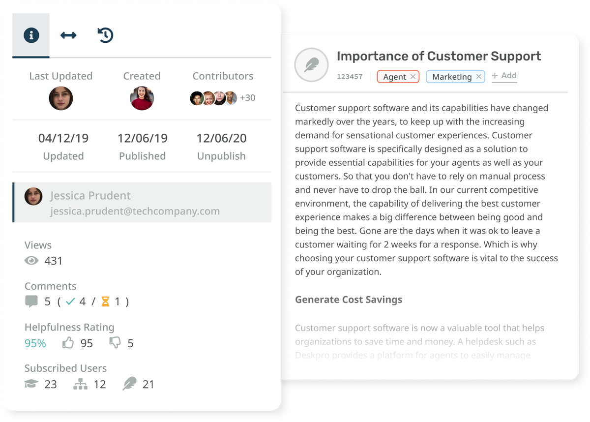 Specify permissions to limit what content customers can view. Set permissions for internal knowledge management, such as employee training, on the same support site as customer FAQs.