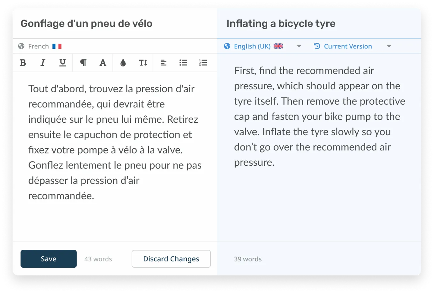 Speak the language of your customers and build stronger relationships across the world by publishing articles in different languages.