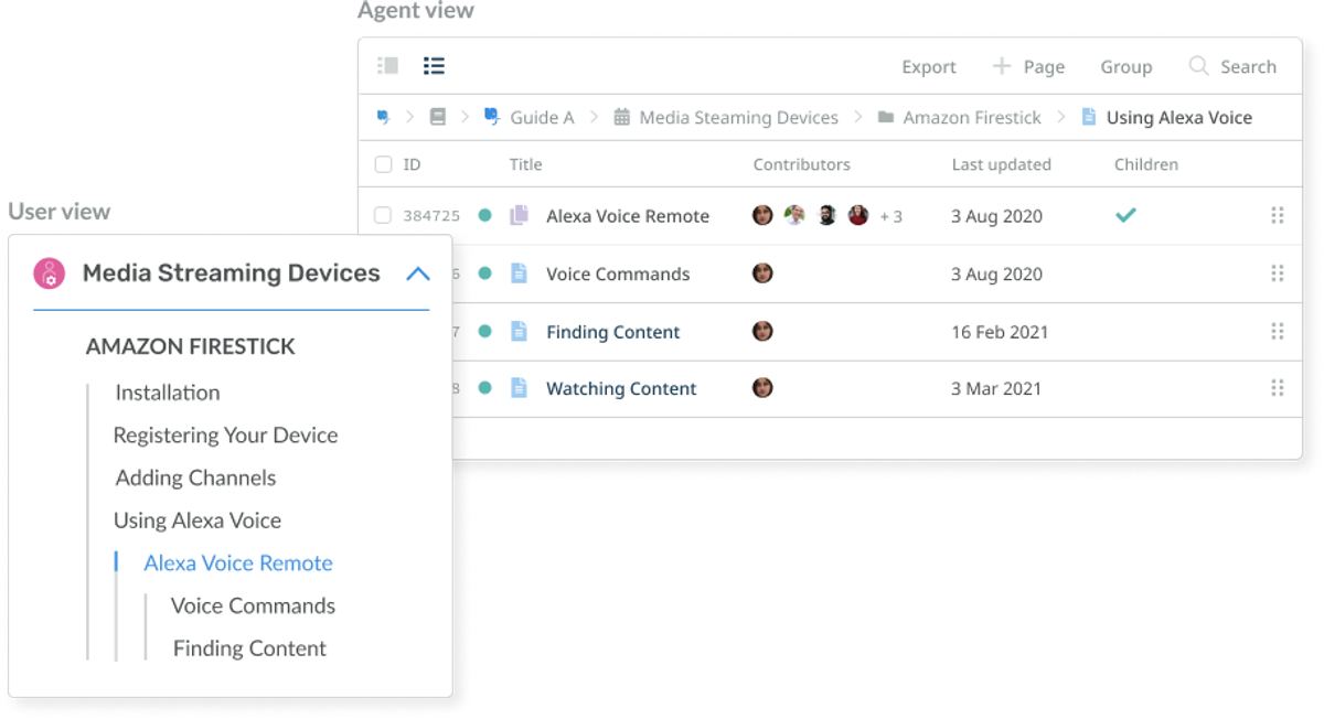 Within each guide, it’s possible to create nested topics with a hierarchy of volumes, chapters and pages, keeping the information organized and easy to navigate.