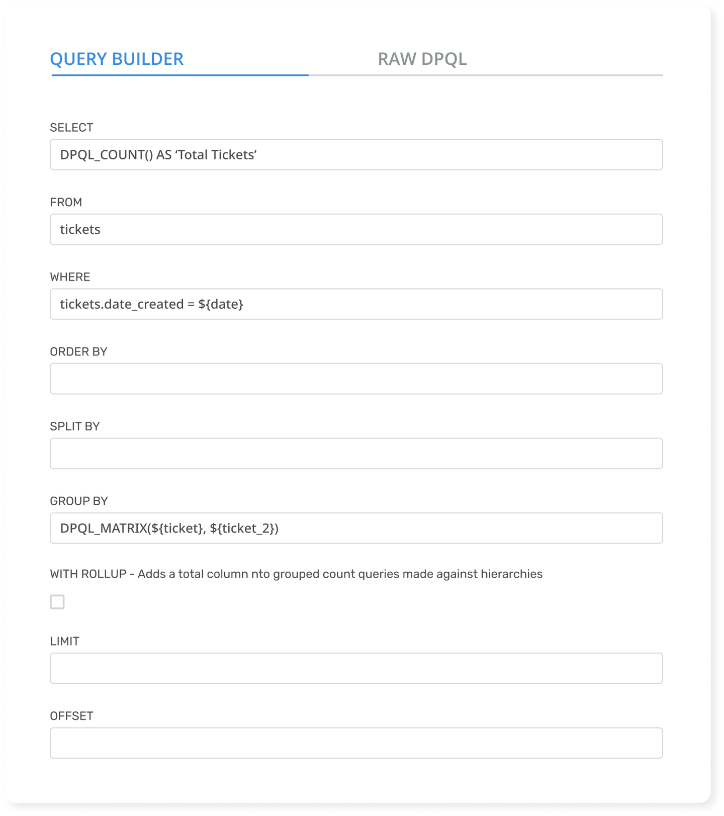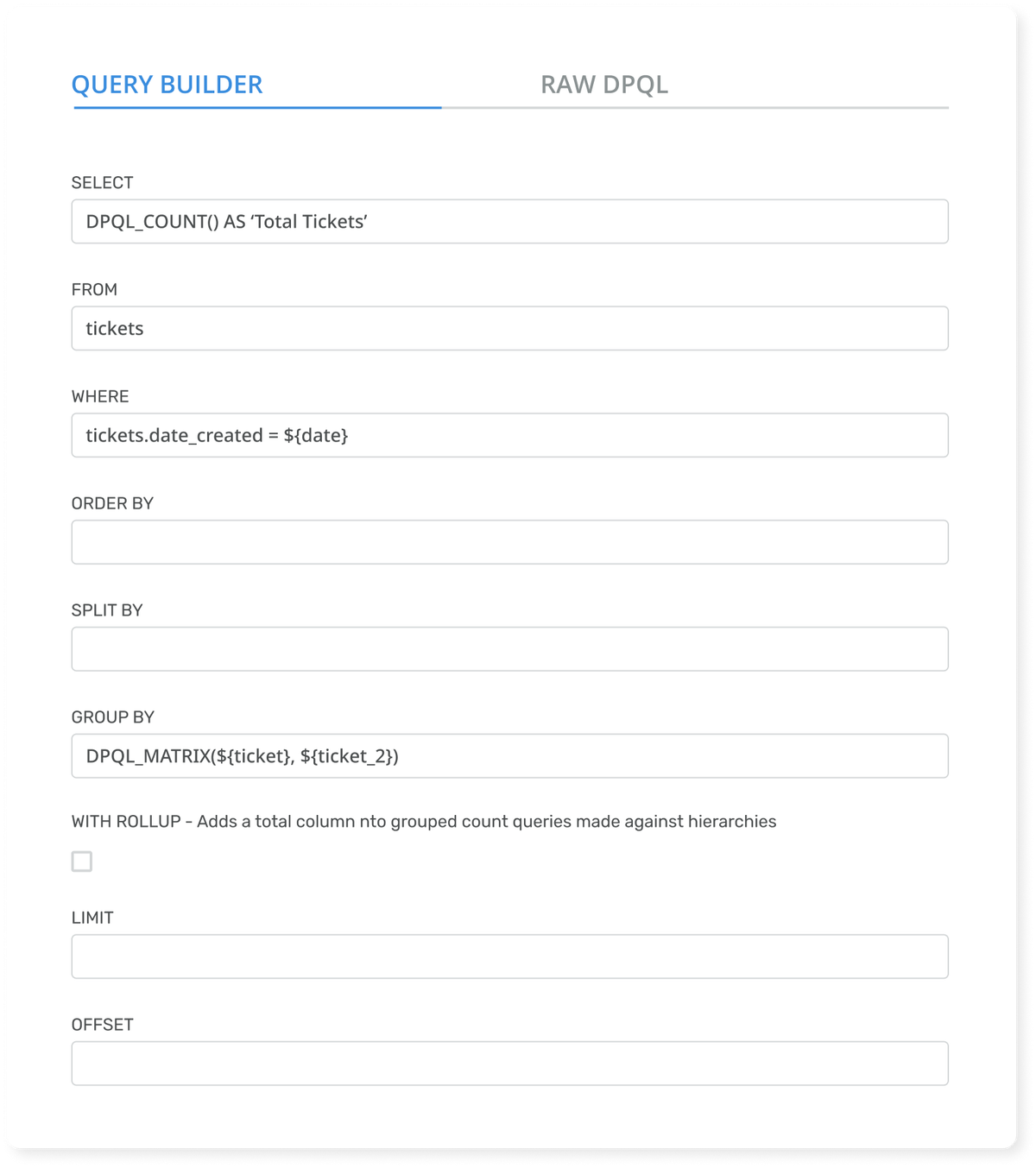 You can create and edit these reports either through the guided DPQL process or by editing the raw DPQL, the choice is yours.