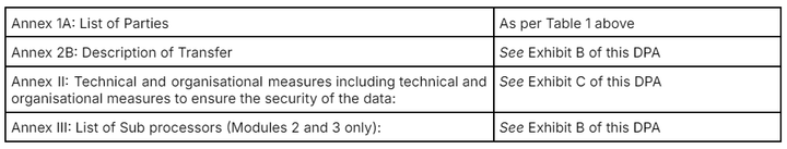 6.3.7 Exhibit B to this Addendum contains the information required in Annex I of the EU SCCs;