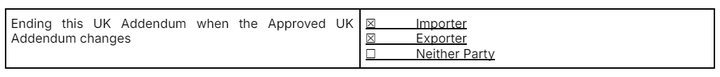 Table 4: Ending this UK Addendum when the Approved UK Addendum Changes