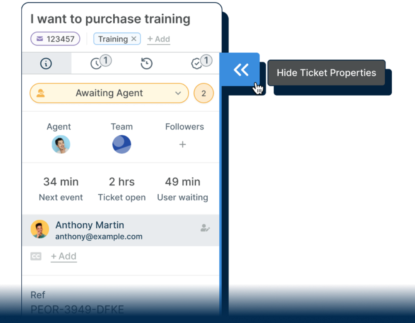 Collapse the Ticket properties and CRM Profile on a ticket to give you better visibility and more room to work. And your viewing preferences will be remembered between tickets.