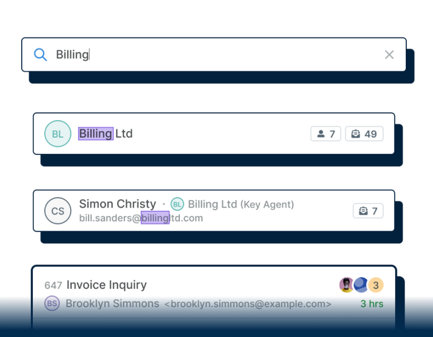 Powerful searching capabilities make it easy for agents to locate the information they need across the different help desk components.