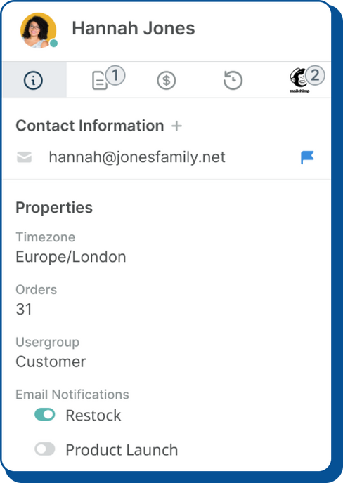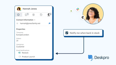 Give customer support teams context with Deskpro's in-built CRM to help them provide the best support. Plus, you can integrate it with your own external CRM system.
