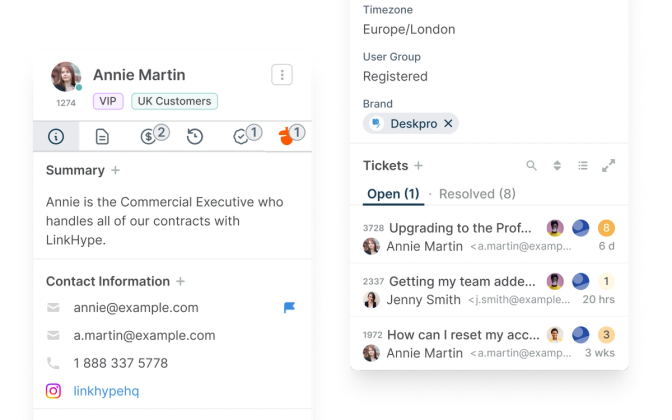 When your customers need help, Deskpro instantly creates a support ticket, no matter which channel they use - email, chat, phone, or social media.