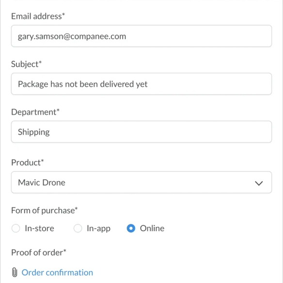 Gather precise information about an issue with one form that changes dynamically based on responses and route it straight to the relevant agents.