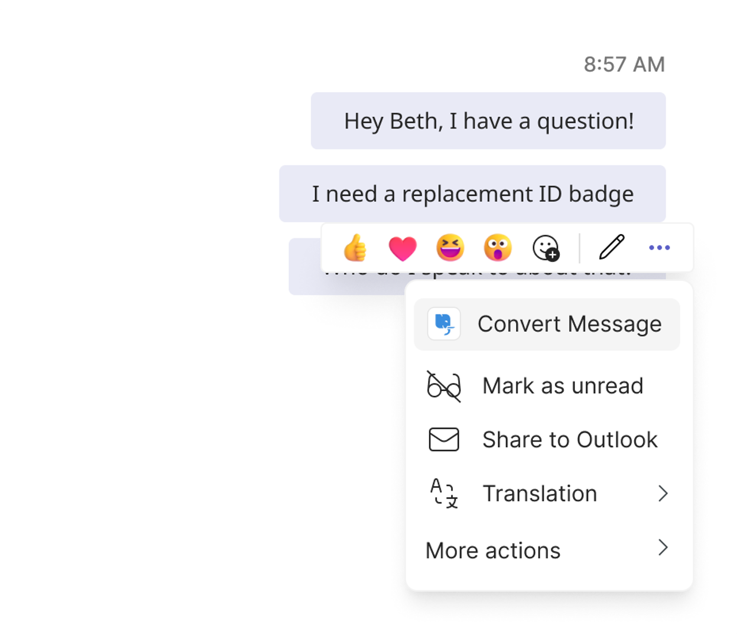 From “the projector isn’t working” to “we’re out of coffee,” Teams is the easiest place to report it.