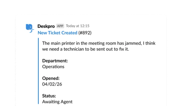 Slack excels at real-time communication, but it struggles with tracking and managing support requests. That's where Deskpro comes in.