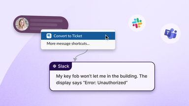 Let your people submit tickets inside Slack, making requests easy to find, track, and resolve.