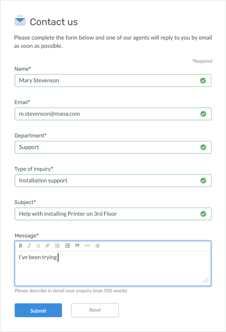 Deskpro allows you to set up dynamic customer contact forms, ensuring agents have all the necessary information in order to resolve customer issues with ease.