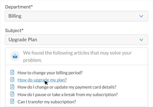Deskpro makes finding answers easier for customers by automatically suggesting relevant articles before they submit a ticket.