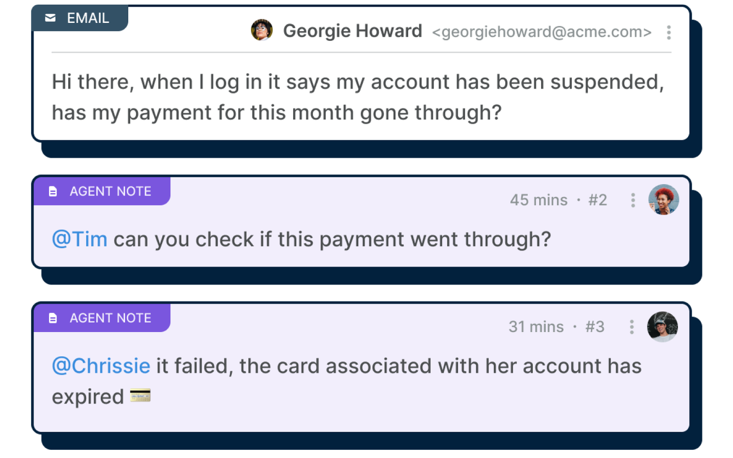 Facilitate collaboration among support agents through internal notes, team chats, and @mentions. Agents can discuss tickets, share information, and seek assistance from colleagues, ensuring a collaborative and cohesive approach to ticket resolution.