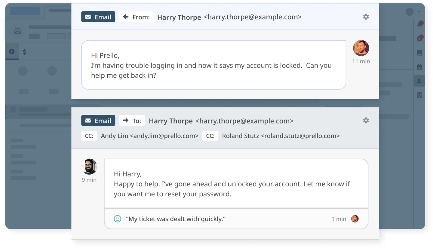 Unlike email, ticketing software allows multiple agents to work on the same issues without getting in each others' way. Teaming up on customers support is easy with Deskpro.